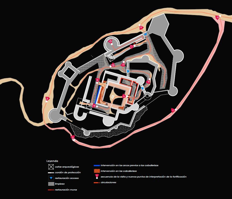 Con un presupuesto ajustado, la propuesta se centra en el diseño del trazado de los recorridos de los visitantes para sacar el máximo partido de la inversión, poniendo en valor los elementos arquitectónicos característicos de esta fascinante fortificación.